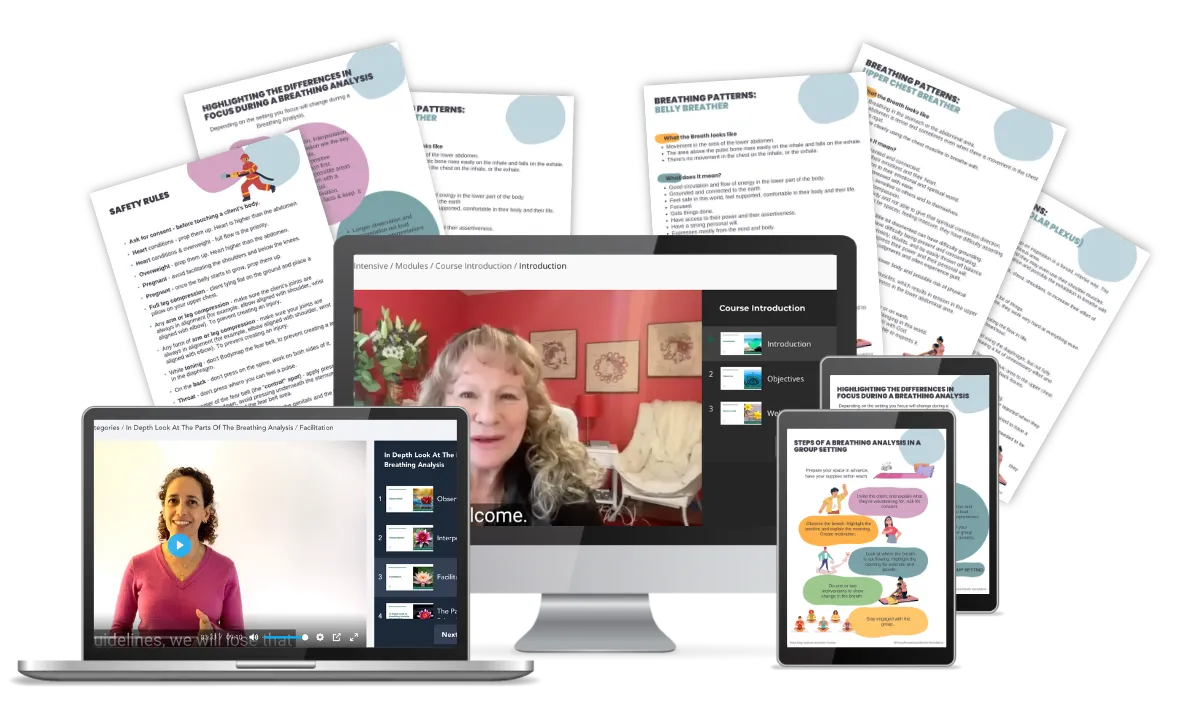 Breathing Analysis In One-On-One Sessions: Address your clients' unique needs using practical tools and skills to assess and interpret their breathing patterns and map your facilitation.You will fine-tune your skills as a facilitator, group leader, or trainer.